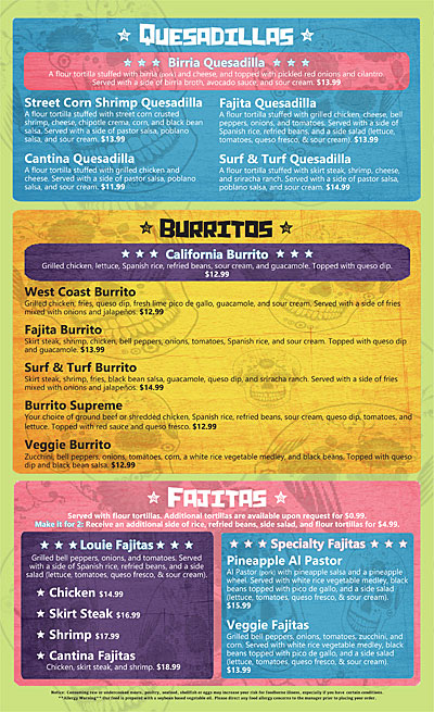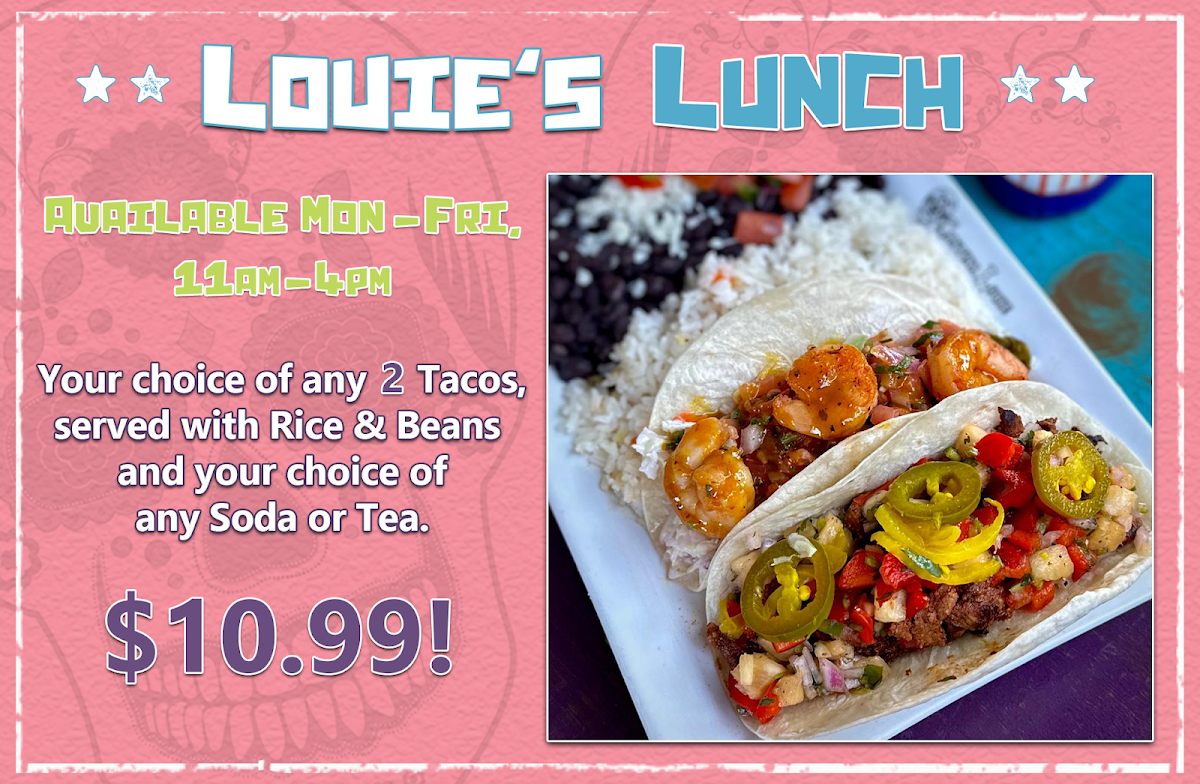 Consistently praised for top-notch service and a fun atmosphere, Cantina Louie invites families and friends to enjoy delicious meals together, building cherished memories over tasty tacos and fresh guacamole. Come for the food, stay for the experience!